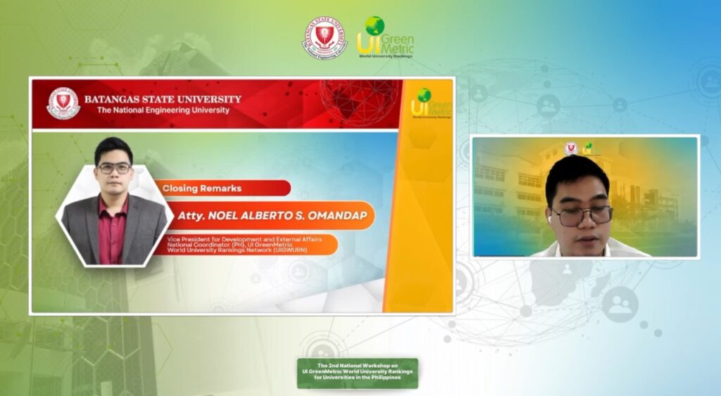 On August 27, the 2nd National Workshop on UI GreenMetric World University Rankings for Universities in the Philippines 2024 was held. This event, hosted by Batangas State University, The National Engineering University, attracted more than 500 virtual attendees, exceeding last year's number of participants. It showcased the unwavering commitment and growing collective awareness to take action for a better future through continuous efforts to transform universities in the Philippines toward sustainable practices.