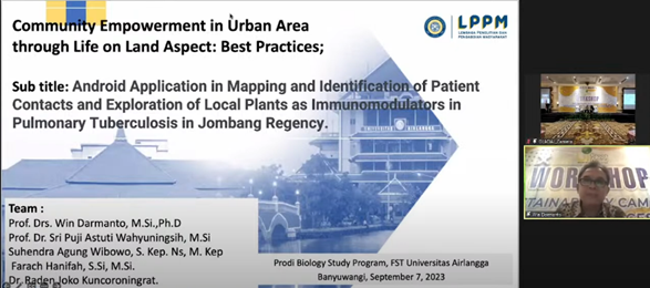 The first keynote Speaker of the workshop, Prof. Win Darmanto, M.Si., Ph.D., brought up the theme "Community Empowerment in Urban Area through Life on Land Aspect: Best Practices.” From what was presented, the One Health concept is about bringing up the four big pillars: human health, plant health, animal health, and environmental health. He highlighted that the indicator of health is not just physical but also from aspect mental, physiology, genetics, and lifestyle.