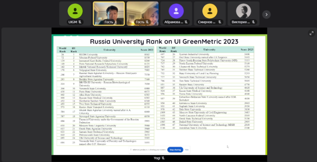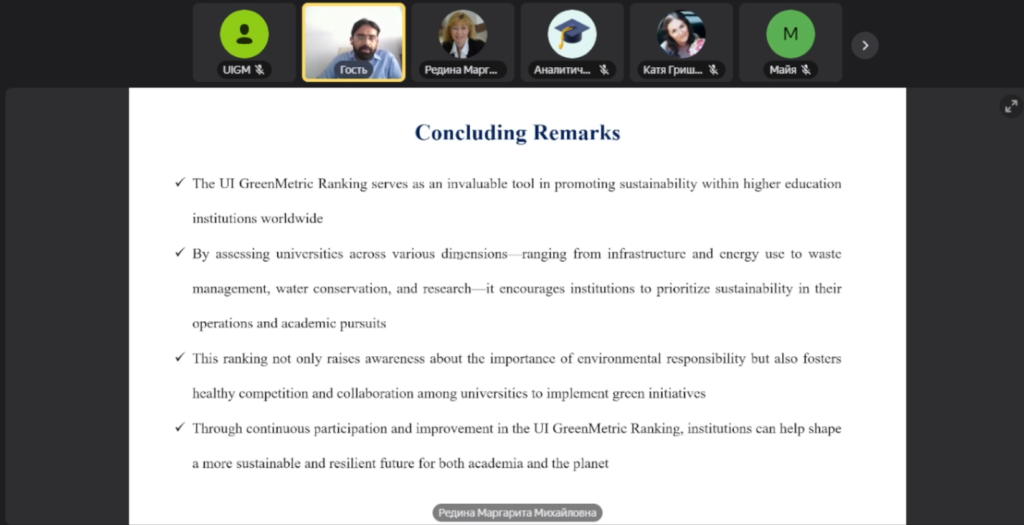 Collaborative Paths to Sustainability: The 8th National Workshop on UI GreenMetric Rankings for Russian Universities