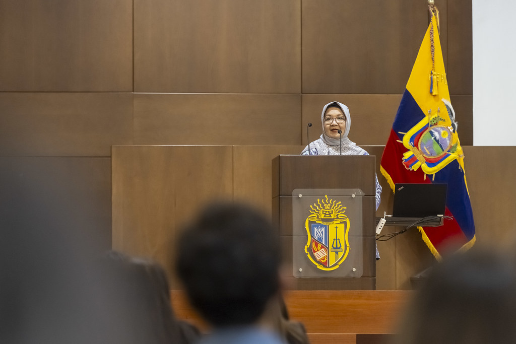 The workshop opened with a welcoming ceremony featuring prominent figures in higher education and diplomacy. Prof. Dr. Riri Fitri Sari, President of UI GreenMetric, delivered remarks highlighting the importance of regional engagement within the GreenMetric network. Dr. Juan Manuel García, Director General of Institutional Evaluation and Quality at UTPL, emphasized the strategic role universities must play in responding to global sustainability challenges. Also present were Dra. María del Rosario de Rivas, Acting Rector of UTPL, and Sr. Agung Kurniadi, Ambassador of Indonesia to Ecuador, whose presence further reinforced the spirit of international cooperation underpinning the event.