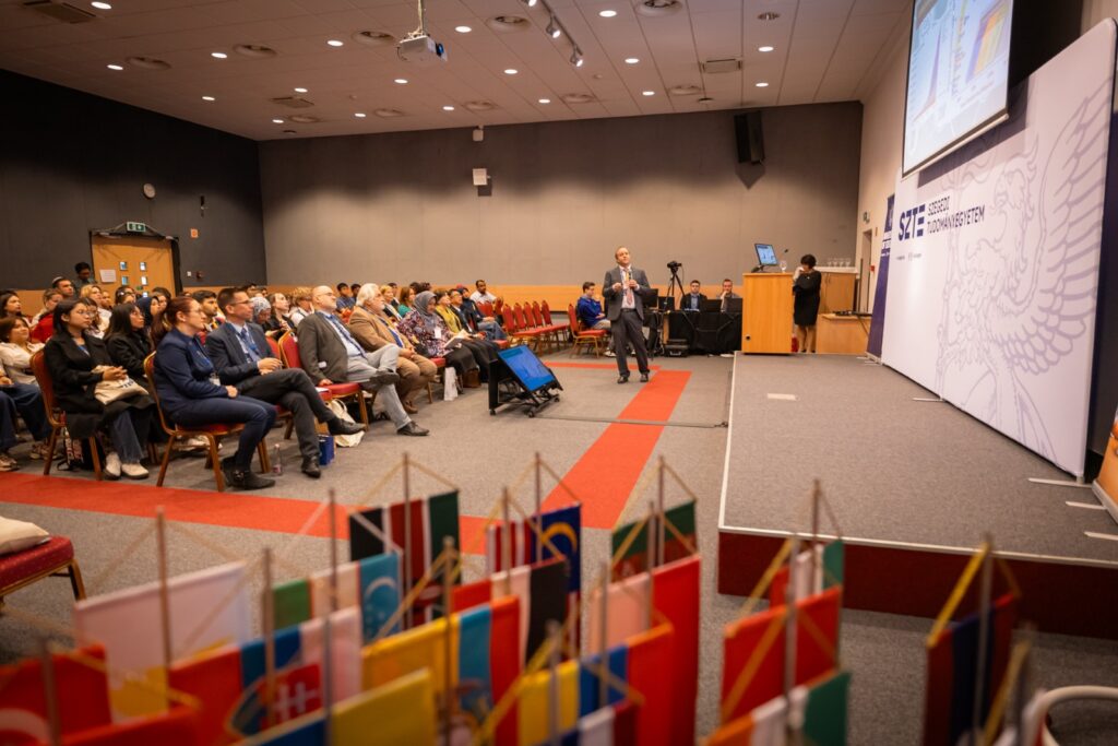 Keynote speeches throughout the day offered powerful insights into pressing global issues. Dr. Csaba Janáky, Director of the National Laboratory for Renewable Energy, challenged popular assumptions in his talk “Renewable Energy: Myth, Hype, and Reality,” offering a balanced and science-driven view on the future of clean energy. Dr. Junaidi, Vice-Chair of Program, Communication, and Partnership at UI GreenMetric, followed with “Building a Greener Future: The Role of Students in Sustainability,” inspiring the audience to recognize their potential and responsibility in creating change. Prof. Dr. Ildikó Csóka, Director-General for Strategy at the University of Szeged, concluded the keynote session with “Responses to Global Challenges at the University of Szeged,” highlighting the university’s institutional strategy and long-term vision for sustainability.