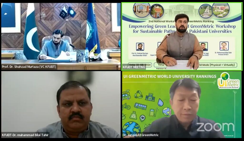 The event continued with a plenary session led by Dr. Junaidi S.S., M.A. Joining virtually from Indonesia, He expressed his gratitude and appreciation for Khwaja Fareed UEIT's efforts to advance sustainability through the commencement of this workshop. UI GreenMetric, as the First World University Ranking Focused on sustainability, values Pakistan's active participation in fostering a university climate that supports the implementation of GreenMetric. This involvement ensures that universities can take a leadership role in sustainability. With annual workshops and initiatives from Khwaja Fareed University, the hope is to expand this movement and encourage more universities to become green leaders within the UI GreenMetric framework and beyond.