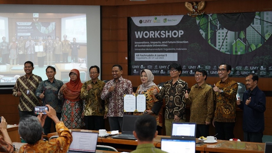 The National Workshop on UI GreenMetric World University Rankings for Islamic Universities in Indonesia, hosted by Universitas Muhammadiyah Yogyakarta (UMY), was held in a hybrid format from 26th to 27th July 2023. This collaborative event between UI GreenMetric and UMY, one of the best Islamic universities in Indonesia, has provided a breath of fresh air and motivation for other Islamic universities to follow UI GreenMetric's path in achieving sustainable university practices. It also represents the third Thematic Priority of UI GreenMetric, "Partnering on Solutions to Sustainability Challenges."