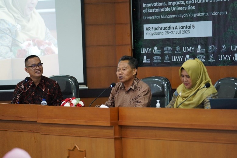 The final session included a discussion moderated by Arie Kusuma Paksi, S.IP., M.A., Ph.D., and presentations from Utik Bidayati, S.E., M.M., Vice-Rector of Finance, Property, and General Administration of Universitas Ahmad Dahlan, discussing water management in Universitas Ahmad Dahlan, and Dr. Rustamadji, M.Si., Rector of Universitas Pendidikan Muhammadiyah Sorong, presenting transportation management in his campus.