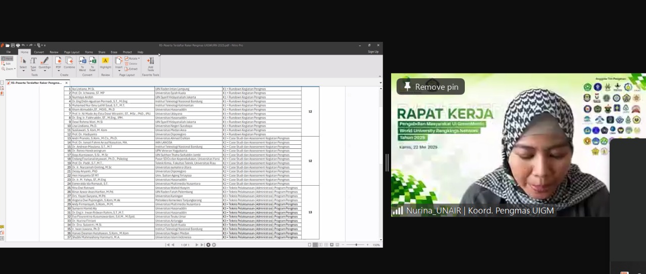 On 22 May 2025, a Strategic Coordination Meeting was held online by Universitas Pancasila, Jakarta, bringing together members of the Community Engagement (Pengabdian kepada Masyarakat / Pengmas) Team under the UI GreenMetric World University Ranking Network (UIGMWURN) Indonesia. This meeting marked an important step in aligning university-led community programs with the broader mission of sustainable development and environmental stewardship.