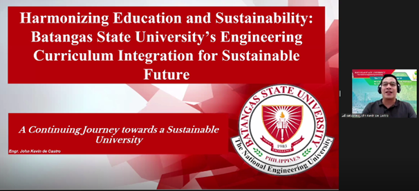 The agenda progressed to the realm of Education and Research, with presentations from Vaberlie P. Mandane-Garcia, PhD, the Sustainable Development Officer at Batangas State University, and John Kevin de Castro, Associate Dean for Program Development and Quality Assurance at Batangas State University. Their presentations delved into the universities' best practices in managing education and research, including teaching methodologies aligned with sustainable development goals.