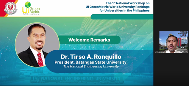 The inaugural National Workshop on UI GreenMetric for Philippine Universities, a milestone event, unfolded on October 26th, 2023, with Batangas State University proudly playing host. Attended virtually by an impressive assembly of approximately 300 participants from various Philippine universities, this symposium featured a diverse array of speakers representing esteemed institutions across the country.