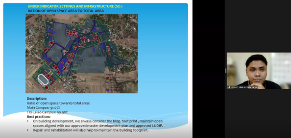 Engr. Lovely Cantos Annonuevo, Head of the Environmental Management Unit at Batangas State University, shared insights on water management best practices based on UI GreenMetric's water indicators. Mr. Reodel Masilungan, the Environment and Sustainability Activities Coordinator at De La Salle University, elaborated on transportation management best practices at his institution.