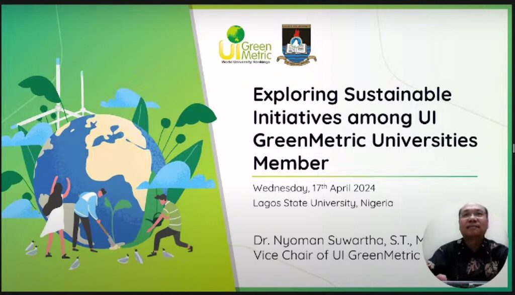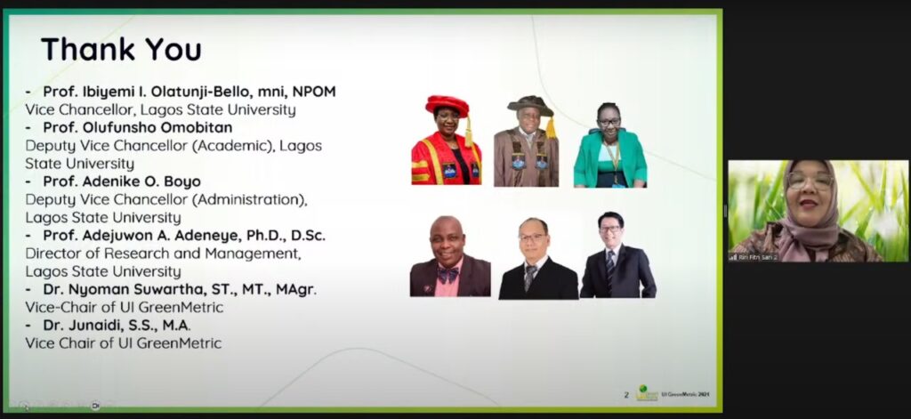 Adding depth and context to the discussions, Prof. Adejuwon shared Lagos University's own sustainability journey, highlighting best practices and lessons learned along the way. The presentations culminated in a dynamic Q&A session, expertly facilitated by Dr. Junaidi, Vice Chair of UI GreenMetric for Program, Communication, and Partnership, fostering an environment of collaboration and knowledge exchange among participants.