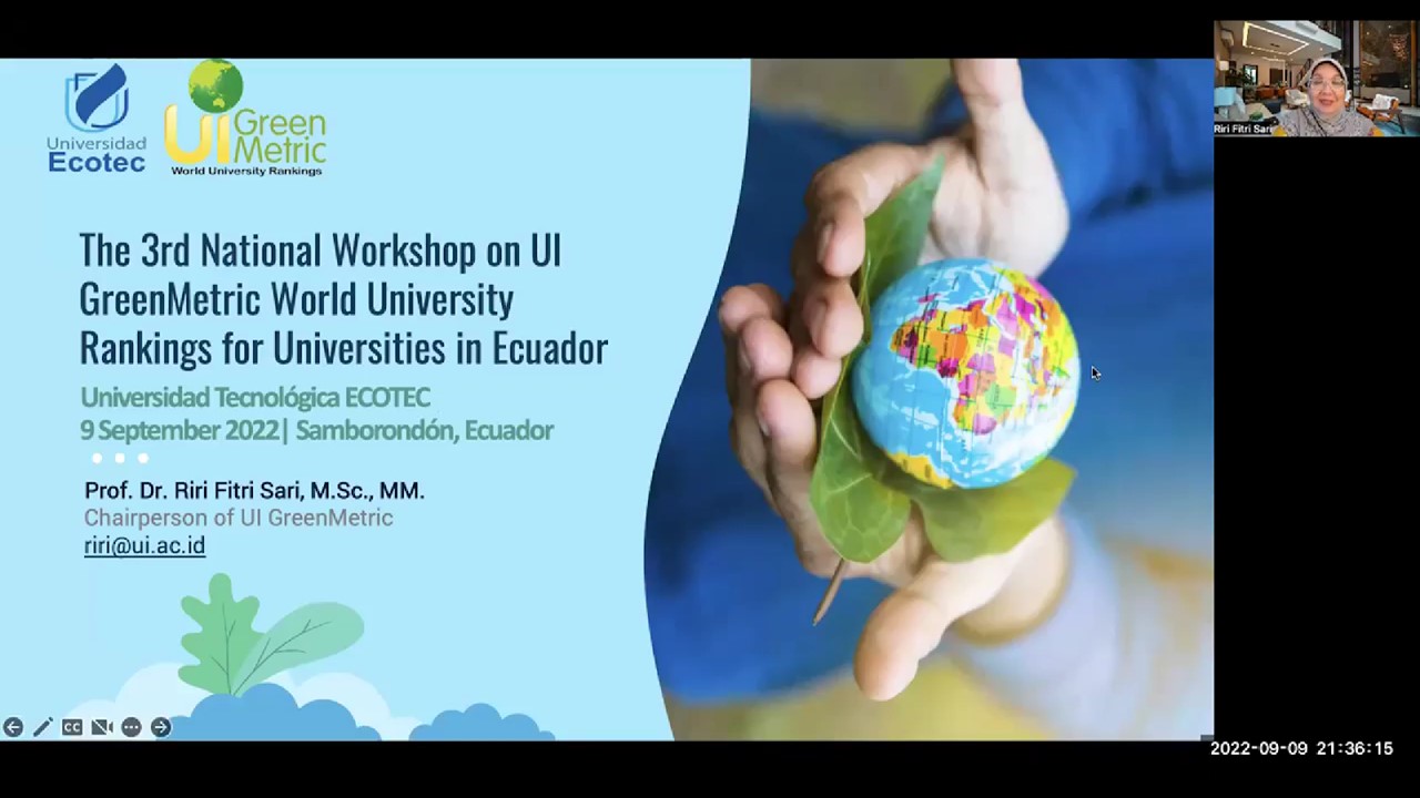 Ecuador, 9 September 2022. As one of the leading sustainability indexes on higher education, UI GreenMetric continues its national workshop series for universities around the world. The 3rd National Workshop on UI GreenMetric World University Rankings was held virtually by Universidad ECOTEC using the Zoom Meeting platform exclusively for universities in Ecuador. Not only representatives from UI GreenMetric and Universidad ECOTEC, the event was attended by a handful of stakeholders ranging from academics to the Ecuadorian Minister of Environment. The event itself is divided into 3 sessions, started from Infrastructure Management, Climate Change, Waste, Education, Water and Transportation, UI GreenMetric World Ranking of Universities, and lastly the World Campus Tour.
