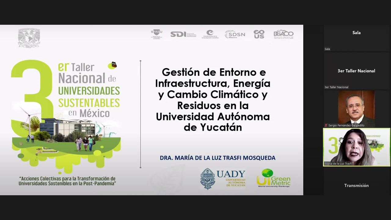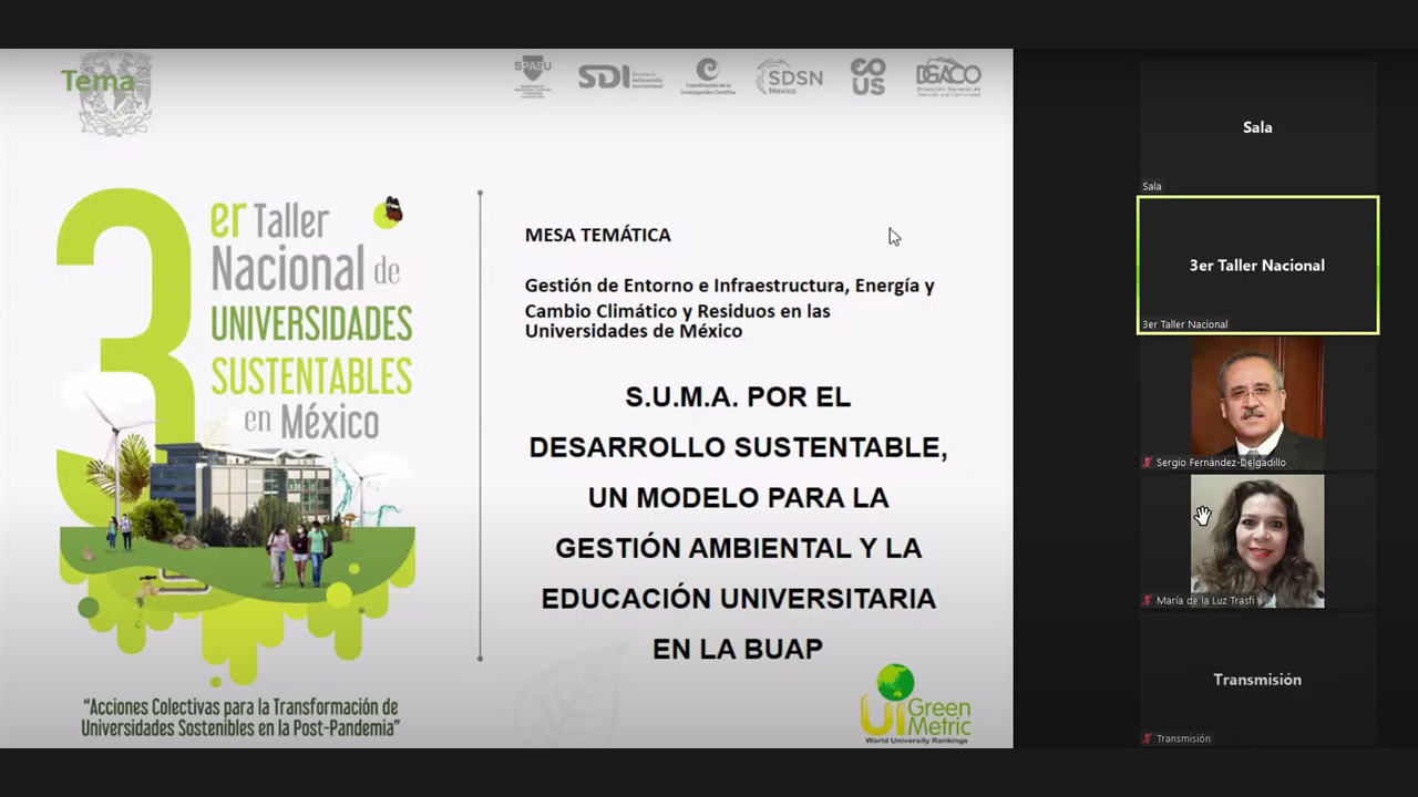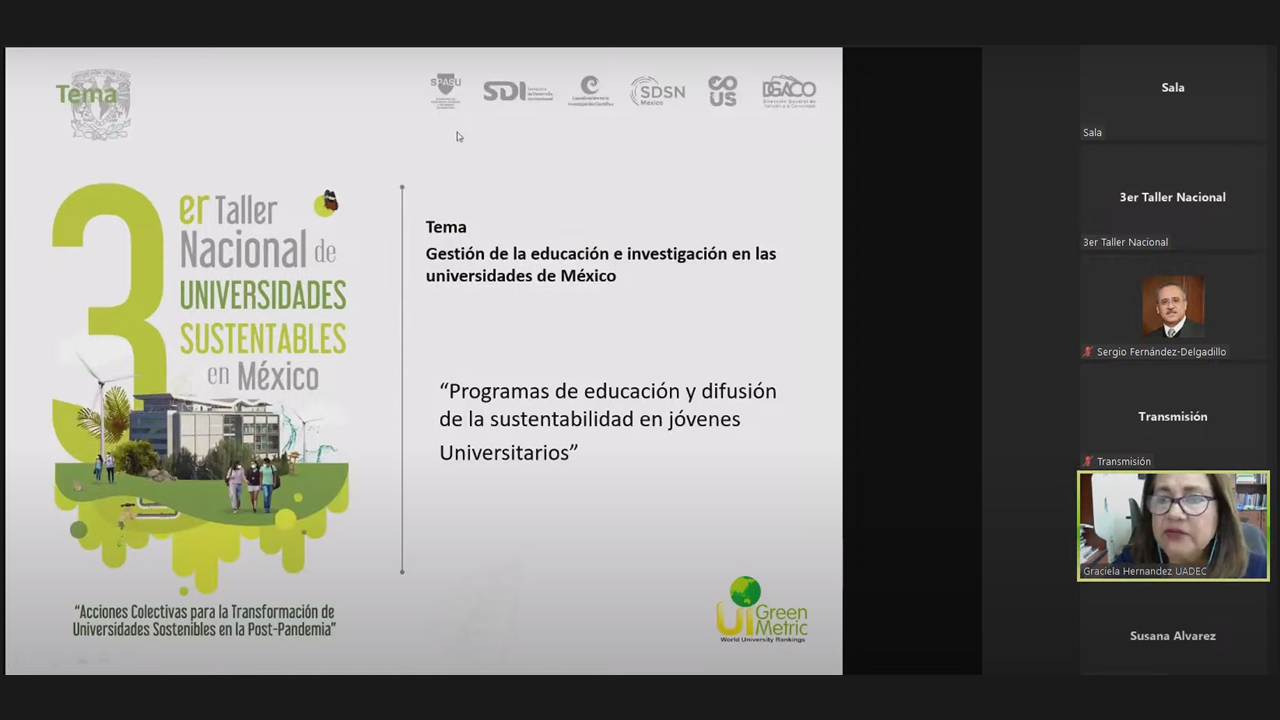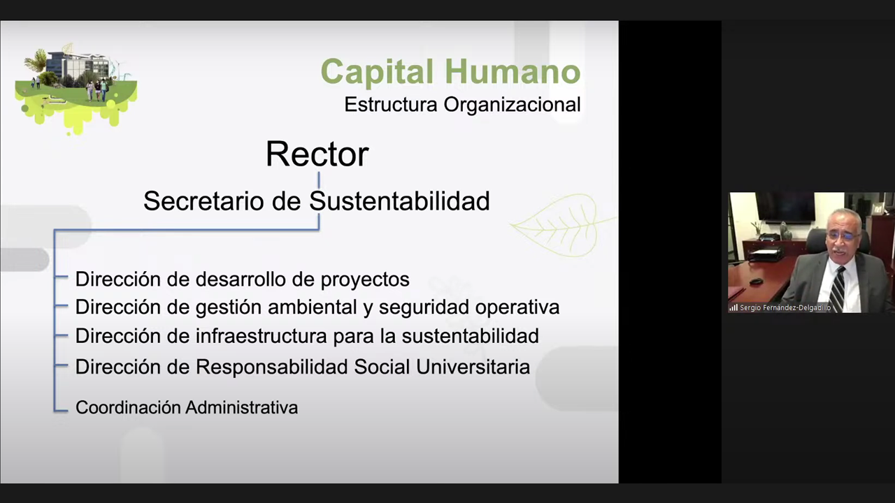 The fourth session was moderated by M. en C. Alfonso de la Vega as Deputy Director of the University Coordination for Sustainability of UNAM to discuss the management of environment and infrastructure, energy, climate change, and waste in the Universities of Mexico. The first speaker of this session, Biól. Antonio Enrique del Ángel Flores as Rector of the Popular University of Chontalpa, explained challenges and post-pandemic strategies in the management of the environment and infrastructure. He emphasized 6 strategies for managing the university’s environment and infrastructure; proper water management, integral management of residues, stewardship and responsible consumption, commitment and environmental culture, energy and climate change handling, and university space. Second speaker, Dr. María de la Luz Trasfi Mosqueda as Institutional Representative of Social Responsibility University, Autonomous University of Yucatán explained post-pandemic challenges and strategies in energy management. She specifically explained the management of environment and infrastructure, energy, climate change, and waste at the University of Yucatan. The third speaker, Dr. Manuel Sandoval Delgado as General Coordinator of Sustainable Development at the Meritorious University of Puebla explained post-pandemic challenges and strategies in action against climate change. He shared about S.U.M.A for sustainable development: a model for management and university education at the BUAP. The fourth speaker, Prof. Graciela Domínguez López as Sustainability Coordinator at the University of Guadalajara, also explained post-pandemic challenges and strategies in energy management of the University of Guadalajara. He shared about university efforts for energy transformations.