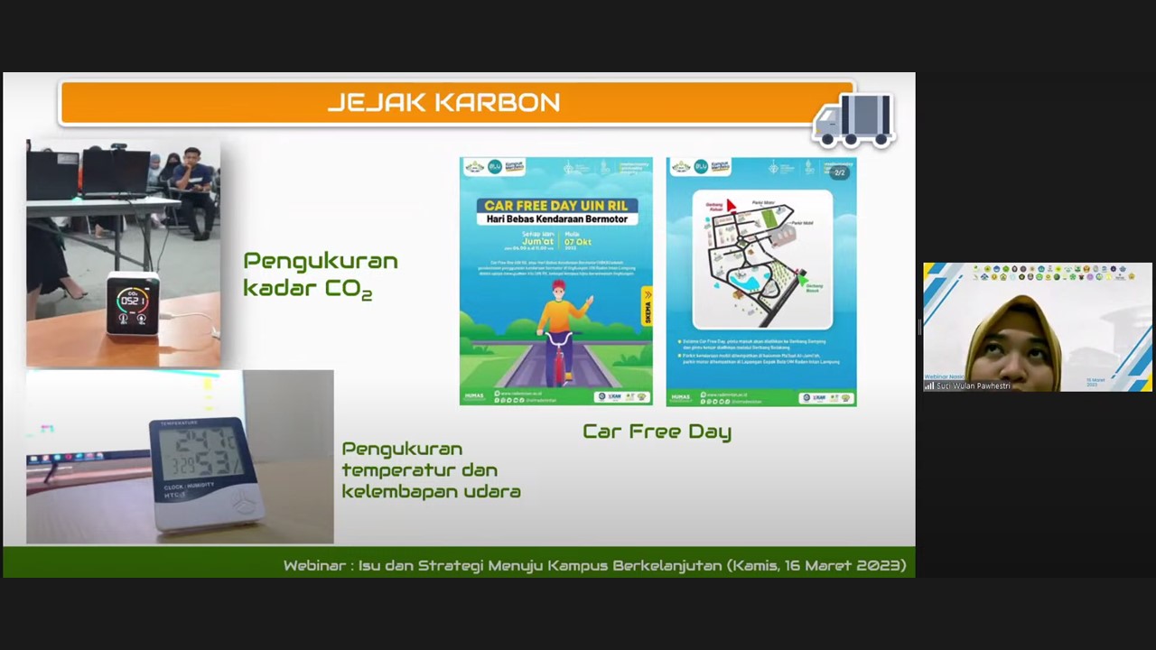 Third Speaker: Suci Wulan Pawhestri M.Si. as the chairperson of the Sustainable Campus and Environmental Awareness Team at Raden Intan State Islamic University