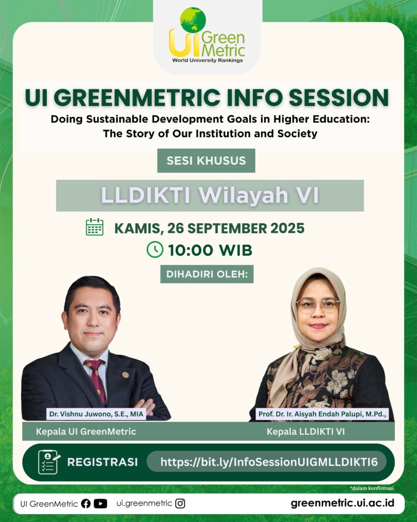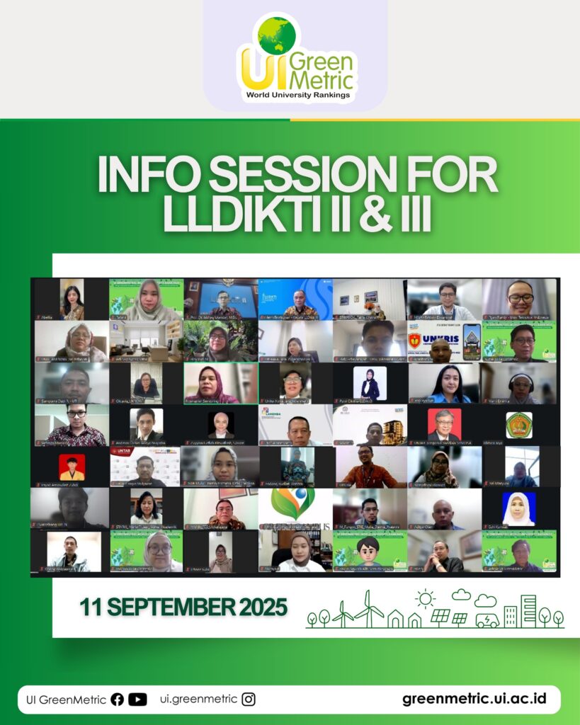 September 2025, UI GreenCityMetric (UIGCM) held a series of Info Sessions in collaboration with several regional LLDIKTI offices to promote sustainable campus development across Indonesian private universities. These sessions aimed to introduce the UIGCM framework and foster meaningful partnerships to support green transformation in higher education.