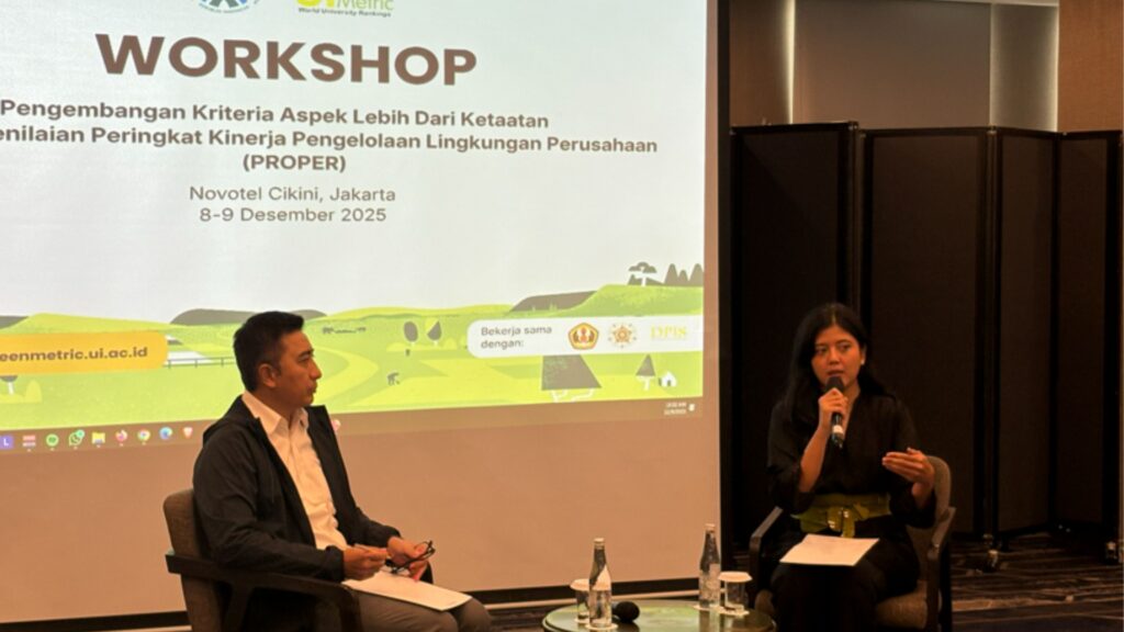 UI GreenMetric bekerja sama dengan Badan Pengelolaan Lingkungan Hidup (BPLH) menyelenggarakan Workshop Pengembangan Kriteria Aspek Lebih dari Ketaatan Program Penilaian Peringkat Kinerja Pengelolaan Lingkungan Perusahaan (PROPER). Kegiatan ini dibuka oleh Dr. Rasio Ridho Sani, M.Com., MPM, Deputi Pengendalian Pencemaran dan Kerusakan Lingkungan BPLH sekaligus inisiator PROPER sejak 1995, yang menegaskan komitmen pemerintah dalam memperkuat kolaborasi untuk pengembangan instrumen penilaian yang lebih komprehensif. Kehadiran Dr. Vishnu Juwono, S.E., MIA, selaku Kepala UI GreenMetric, pemeringkatan universitas global yang kini diikuti 1.745 partisipan dari 105 negara, turut menunjukkan sinergi kedua institusi dalam mendorong penguatan indikator keberlanjutan di tingkat nasional dan internasional.