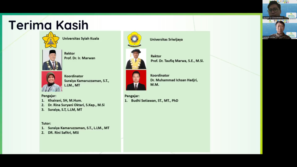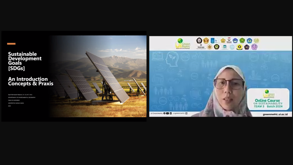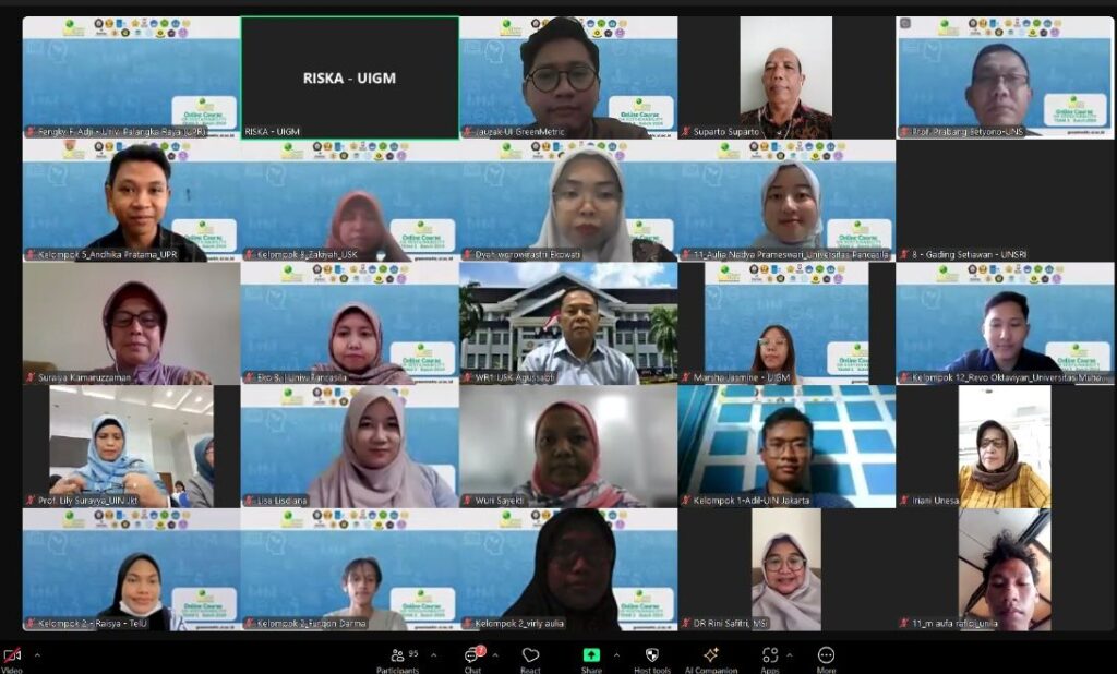 On September 19, 2024, the UI GreenMetric Online Course on Sustainability officially launched for Team 3. This online course is a collaboration initiative by 17 universities, led by UI GreenMetric, in response to the growing need of solution to the sustainability challenges. The 17 universities are from various regions across Indonesia, including Universitas Sam Ratulangi Manado, Universitas Diponegoro, Universitas Padjadjaran, Institut Teknologi Sepuluh Nopember, Universitas Syiah Kuala, Telkom University, Universitas Pattimura, Universitas Palangka Raya, Universitas Lampung, Universitas Negeri Surabaya, Institut Teknologi Nasional, Universitas Gadjah Mada, Universitas Pancasila, Universitas Islam Negeri Syarif Hidayatullah Jakarta, Universitas Sriwijaya, Universitas Muhammadiyah Malang, and Universitas Sebelas Maret.