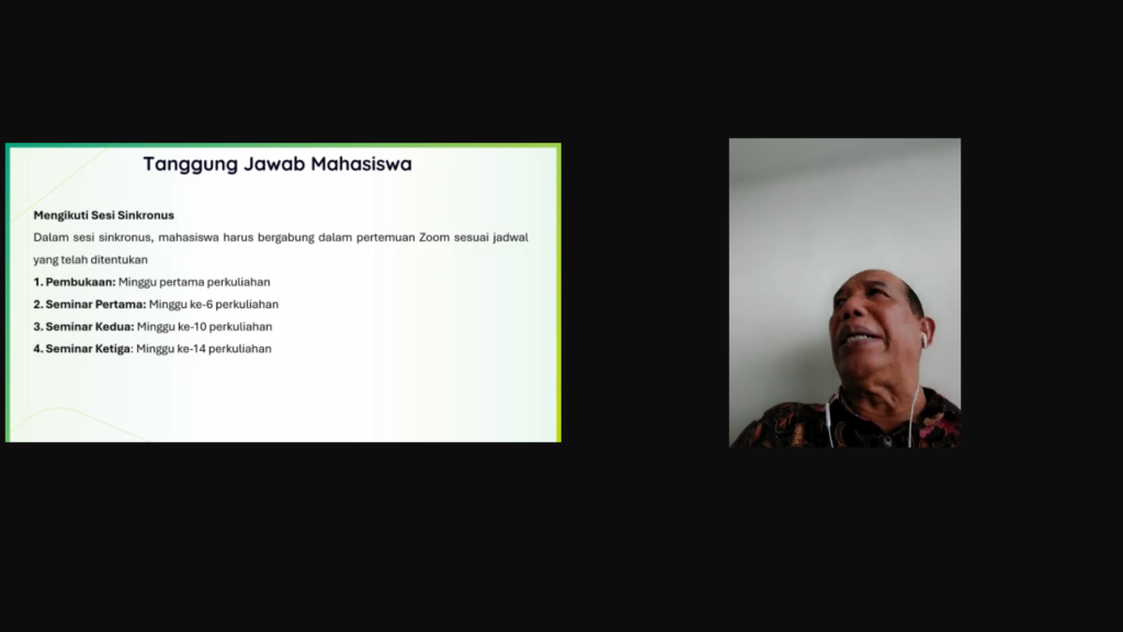The event then featured Drs. Suparto, M.Pd, the Academic Coordinator, who provided a comprehensive overview of the course syllabus, materials, key dates, and the Moodle platform. He emphasized the importance of balancing social progress, environmental preservation, and economic growth to achieve true sustainability.