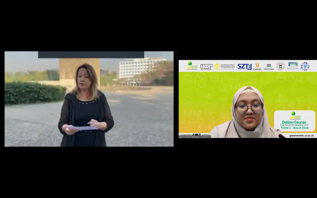 On September 12, 2024, the second opening of the UI GreenMetric Online Course on Sustainability for Team 1 took place. This online course is a collaborative effort among eight universities, initiated by UI GreenMetric, in response to the global demand for a sustainable future. The participating universities include the University of São Paulo, El Bosque University, Escuela Superior Politécnica de Chimborazo, Universitas Indonesia, University of Sharjah, University of Sousse, University of Szeged, and Oguz Han Engineering and Technology University. The event was held virtually, enabling students and lecturers from across the world to attend via Zoom.