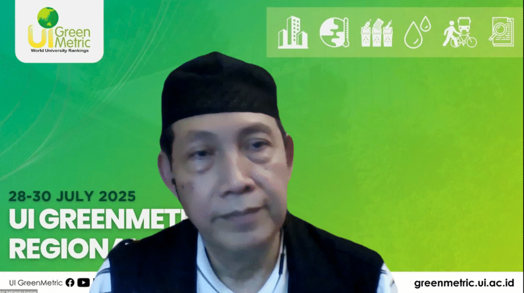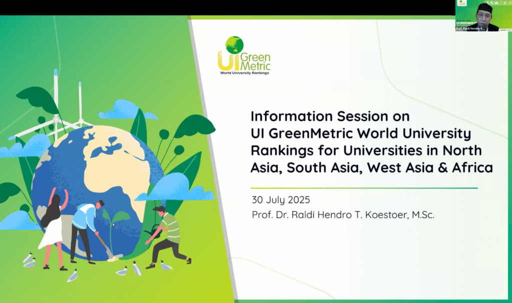 30 Juli 2025 – UI GreenMetric successfully concluded its 2025 Regional Info Session series with a dedicated session led by Prof. Raldi Hendro Koestoer, Ph.D., one of UI GreenMetric’s senior reviewer. The session attracted participation from around 150 universities, demonstrating continued global interest in advancing sustainability within higher education.