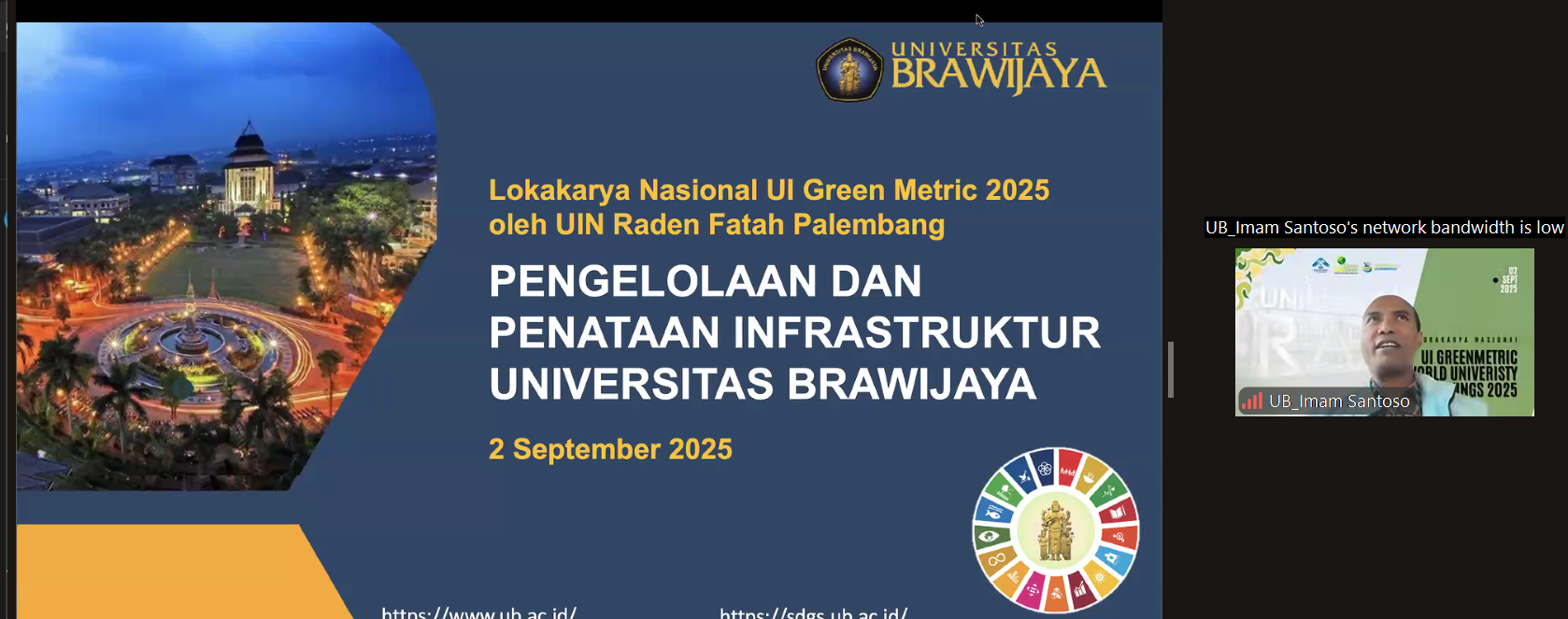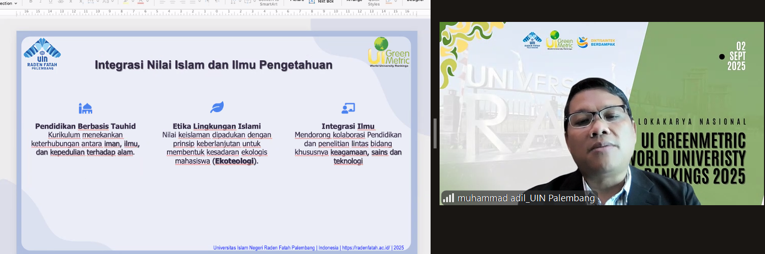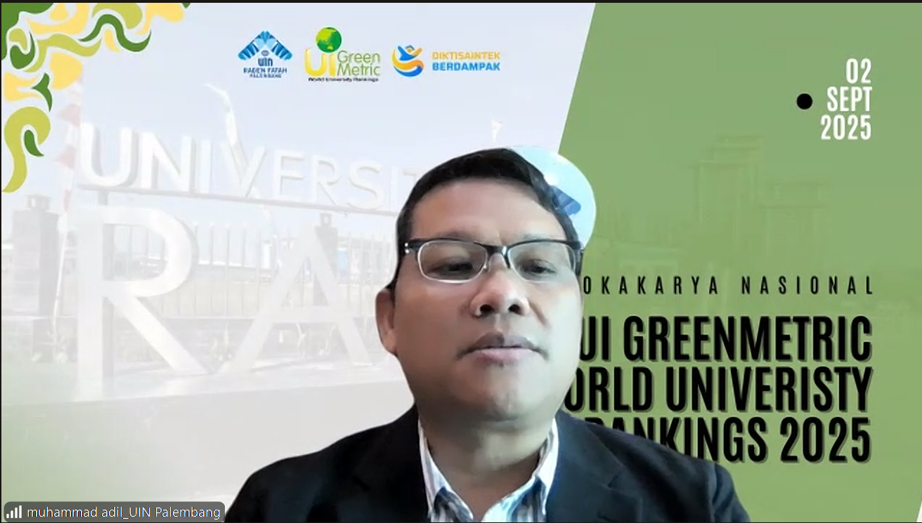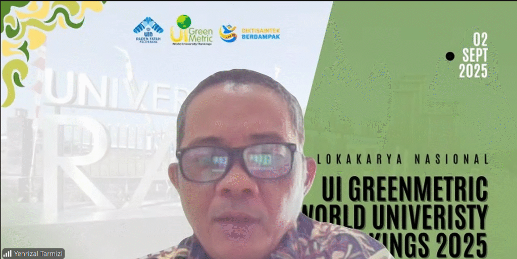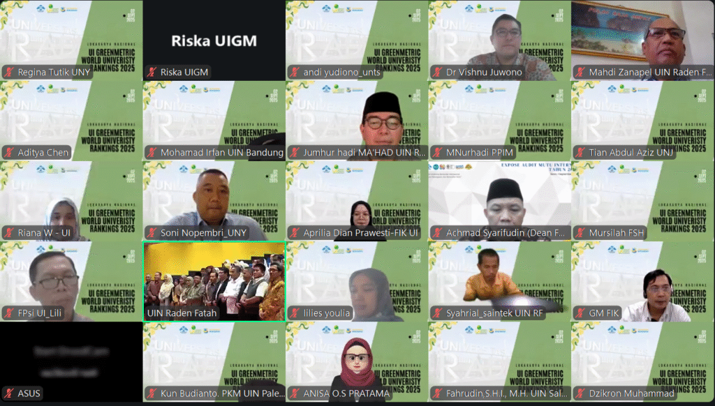 Palembang, 2 September 2025 – Universitas Islam Negeri (UIN) Raden Fatah Palembang proudly hosted the National Workshop on UI GreenMetric 2025, a national forum dedicated to advancing sustainability in higher education. Held virtually via Zoom, the event brought together leaders from universities across Indonesia to exchange ideas, showcase innovations, and reaffirm their commitment to building greener campuses.