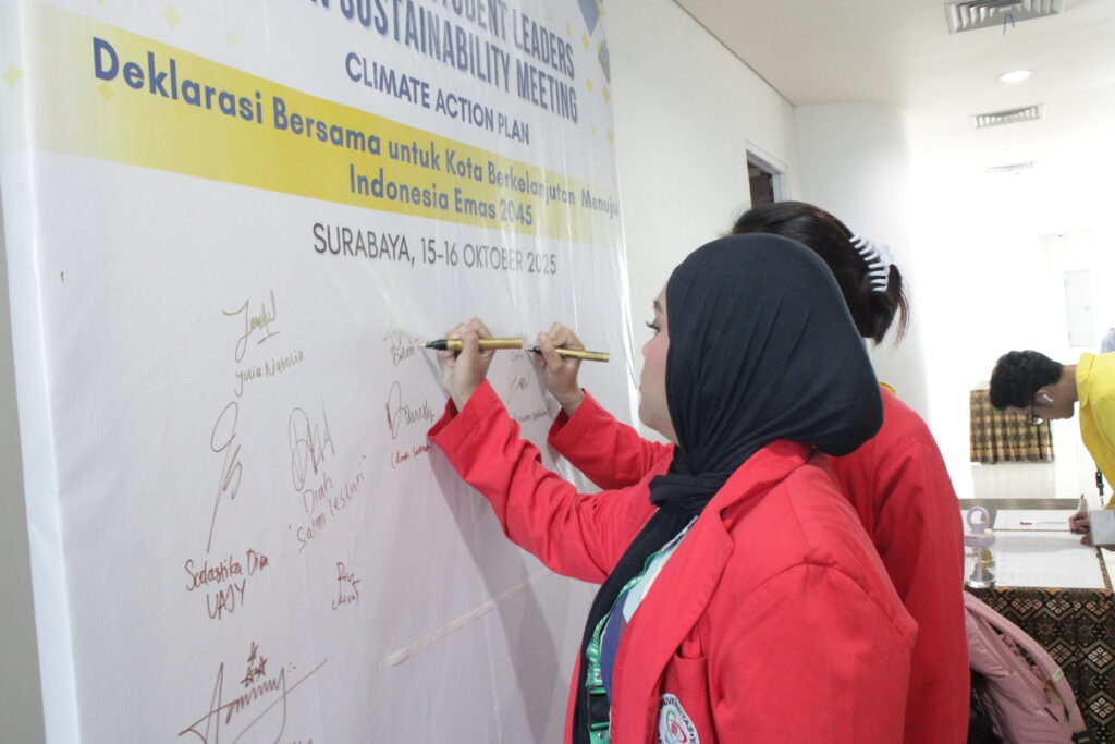 14–16 October 2025, Surabaya — Over three inspiring days, student delegates from universities across Indonesia gathered at Universitas Airlangga (UNAIR) for The 5th National Student Leaders on Sustainability Meeting (NSLSM), held from 14 to 16 October 2025 in collaboration with UI GreenMetric World University Rankings. The event served as a dynamic platform for young changemakers to exchange ideas, explore best practices in sustainability, and strengthen their role in driving collective environmental action for a more sustainable future.