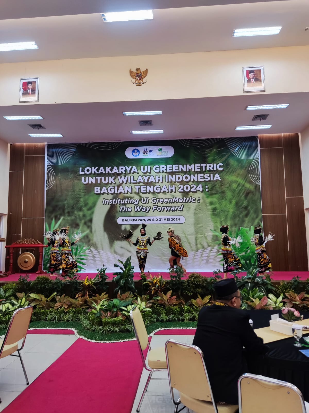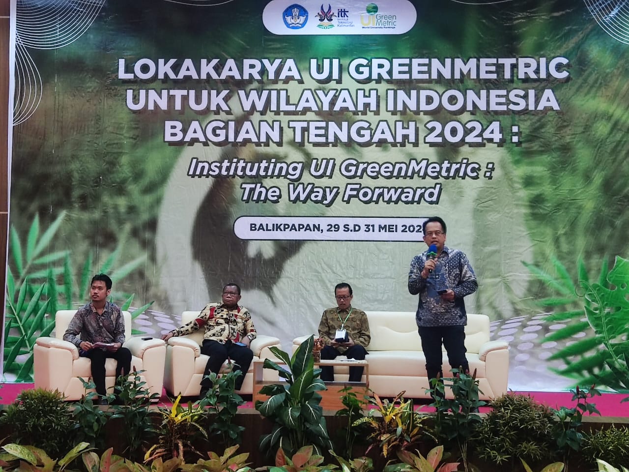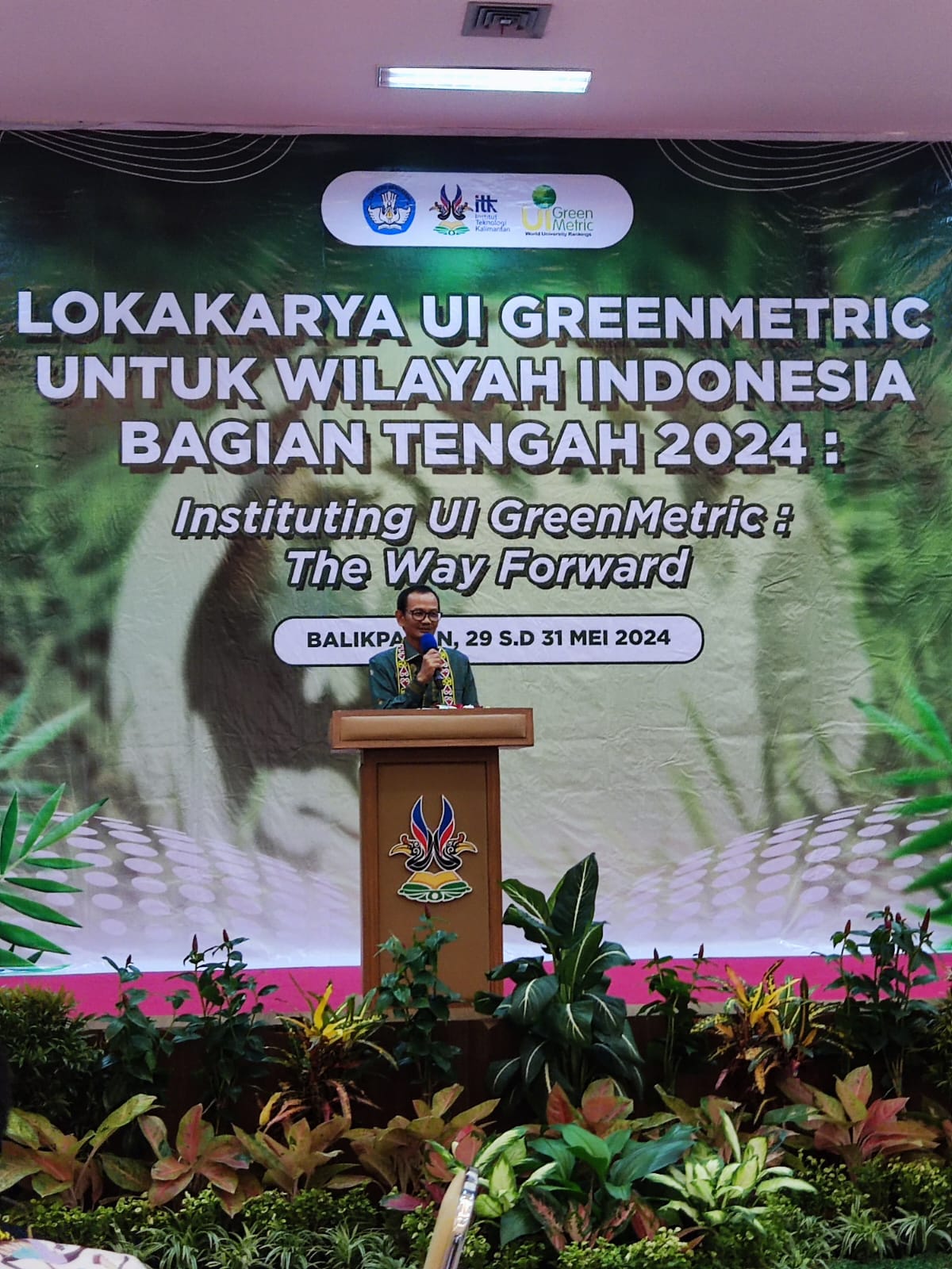 Workshop UI GreenMetric 2024 for the Central Part of Indonesia was held from 29 May 2024 to 31 May 2024. This event opened with traditional dance performed by UKM Tari Institut Teknologi Kalimantan followed by opening remarks from Prof. Dr. rer. Nat. Agus Rubiyanto, M.Eng.Sc. as rector of ITK, Prof. Riri Fitri Sari, M.M., M.Sc as chairperson of UI Greenmetric. and Achmad Safei as Secretary of the Balikpapan City Research and Development Bappeda, representative of the Mayor of Balikpapan.