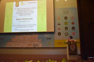 In her keynote speech, Dr. Baiduri Widanarko explained current Developments in UI GreenMetric Rankings and described the achievements of the UI GreenMetric indicator statistical analysis of all university in Thailand which participated in UI GreenMetric World University Rankings 2016.