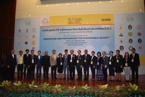 The Thailand's 2017 SUN conference was held on November 23, 2017 which took place at Chaloem Rajakumari 60 Building, Chulalongkorn University, Bangkok. The event themed "Innovation and Partnership for Sustainable Society" was started with remarks from the chairman of the event, Prof. Boonchai Stitmannaithum, Vice President for Physical Resources Management.