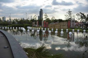 Entrance into the area within the park, there is a wide range of plants and also the presence of buildings that are designed underground and above the building, there are various kinds of plants and walkways. The beautiful atmosphere in the central garden of this city was felt, although, in the city center surrounded by tall buildings, there was still a beautiful garden that can be useful as an oxygen producer and to reduce pollution.