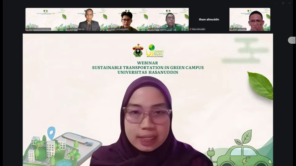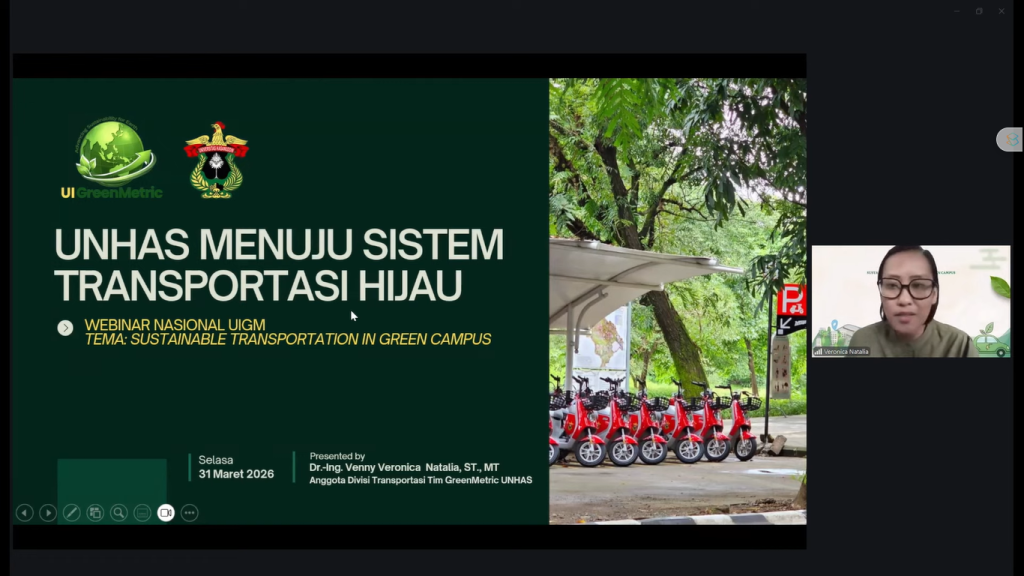 On March 31, 2026, Universitas Hasanuddin hosted a webinar dedicated to exploring sustainable transportation strategies within university environments. Conducted in Indonesian, the event featured a series of in-depth presentations by experts from Universitas Hasanuddin and Institut Teknologi Sumatera (ITERA) who are the leading Indonesian universities on sustainable transportation in the UI GreenMetric Sustainable University Rankings. The discussions centered on the pivotal role of higher education institutions in pioneering eco-friendly mobility, emphasizing the reduction of private vehicle dependency, the promotion of electric bicycles, and the seamless integration of smart technology into campus infrastructure.